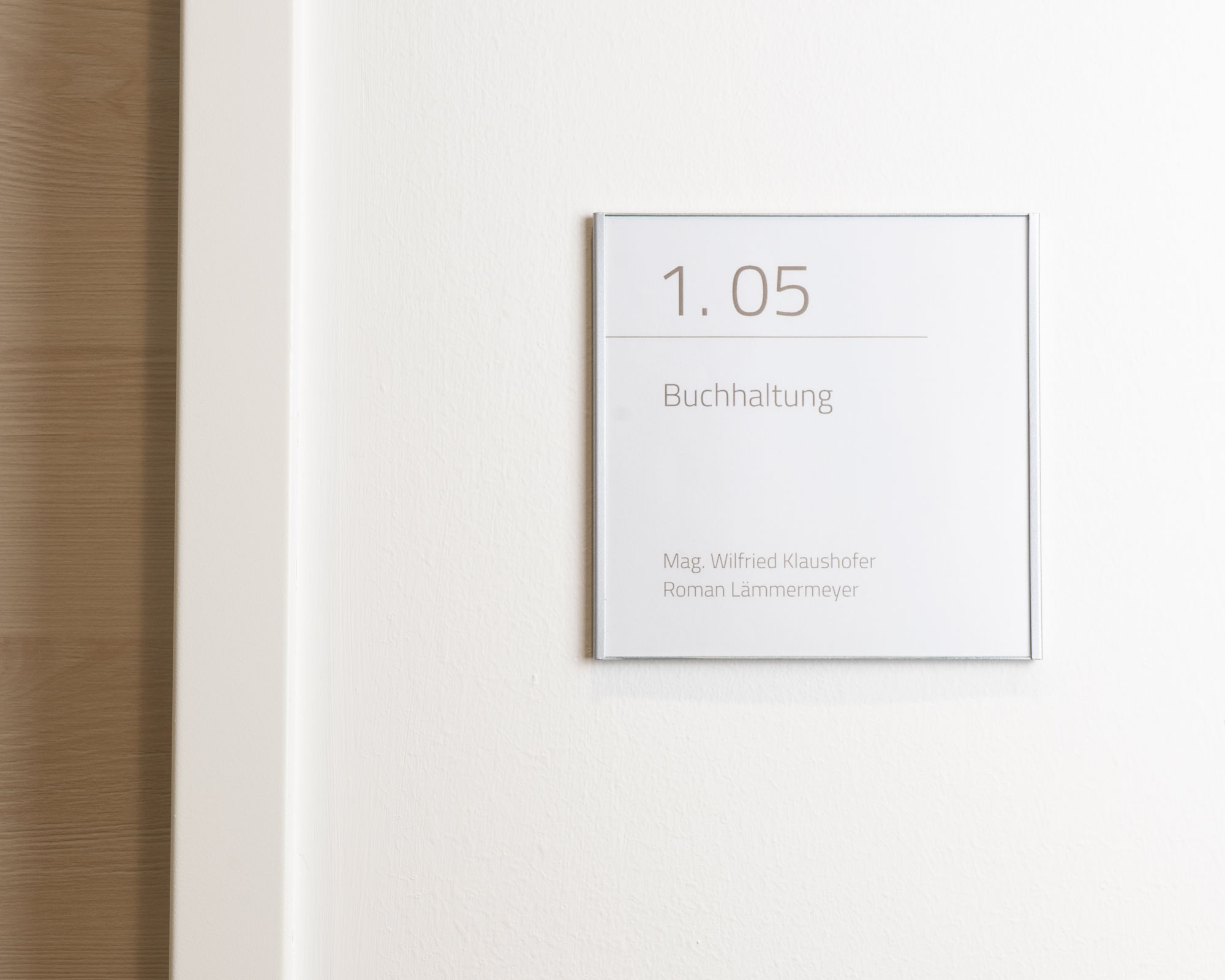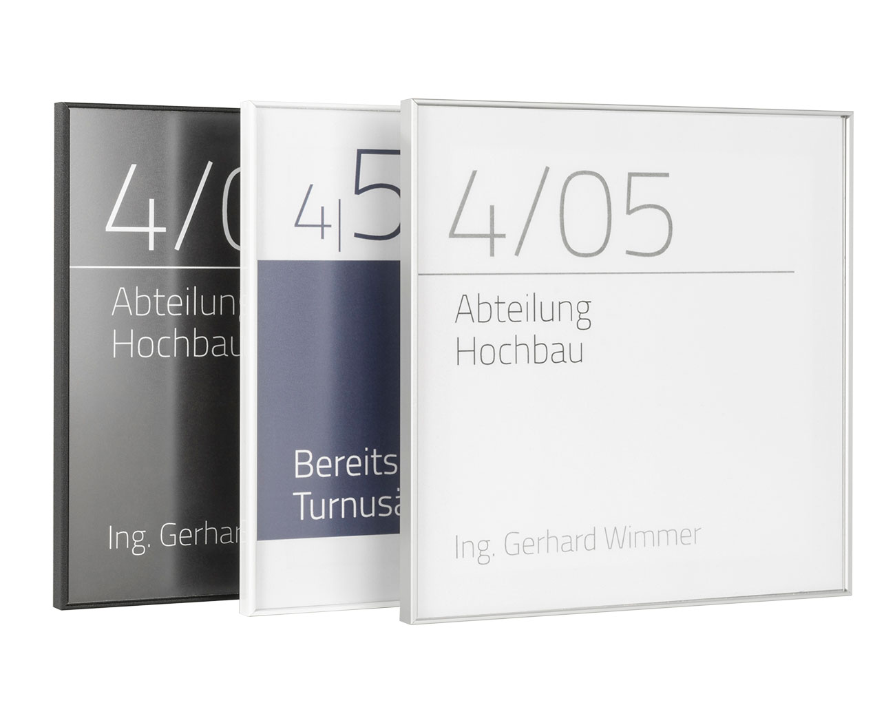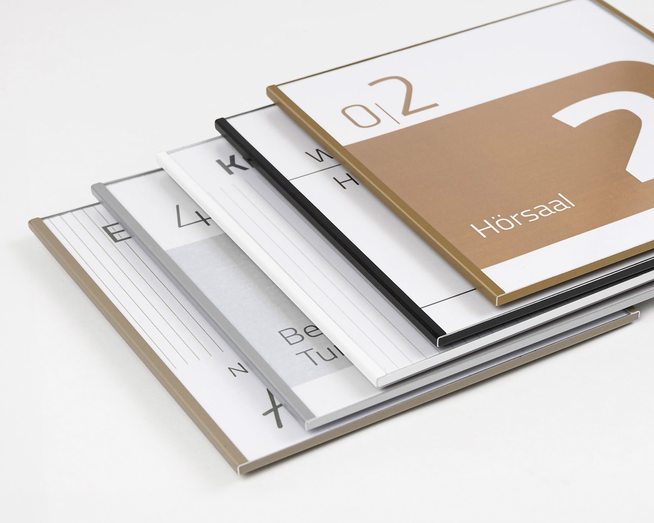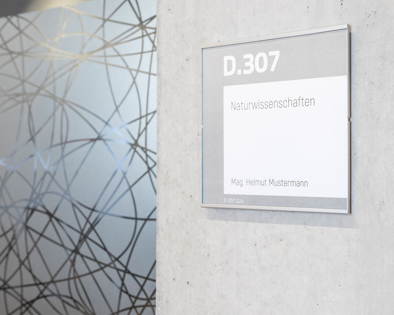 Taktile Schilder und Leitsysteme wie Türschilder, Handlaufschilder und Bodenleitlinien.